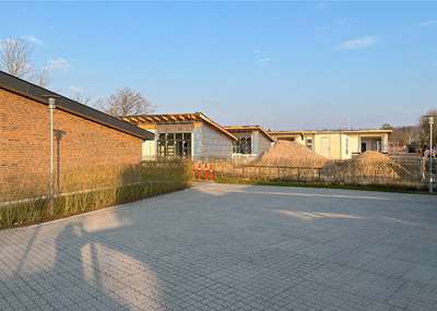 Den eksisterende bygning skal bevares i rødbrune teglsten men de nye tilbygninger skal opføres i let konstruktion som udv. beklædes med kløvede naturskifer som står godt op mod de rødbrune teglsten og som ikke patinerer men beholder samme udseende også om 50 år.
