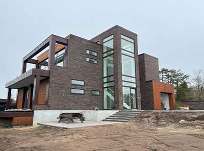 I marts blev byggeriet af det spændende énfamilishus på Thorsensvej i Bramming påbegyndt, som nu er tæt på at være færdig. Huset udmærker sig ved den specielle udhængsløsning hvor der er synlige spærender og imellem disse er der monteret egelister på en sort baggrund. Herudover har bygherren fravalgt den traditionelle flisebelægning rundt om huset og istedet fået udlagt en støbt farmoreret plade fra firmaet Smuk Beton. Fordelen ved denne løsning er at man slipper for fugerne som betyder at der ingen vedligehold.