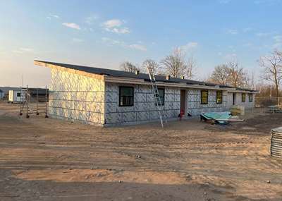 Byggeriet af de 3 dobbelhuse i Gørding som blev påbegyndt i december 2024 er nu godt igang og skrider planmæssigt fremad. Dette byggeri, er som de tidligere opførte i 1 etape kendetegnede ved at de har et meget lavt energiforbrug bla. fordi der er anvendt PIR isolering i ydervæggende som er et produkt med en meget lav u-værdi i forhold til trationel blød mineraluld.