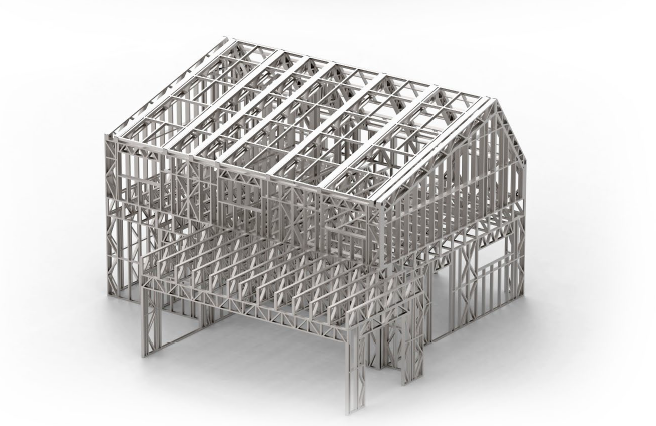 Èn af vores tidligere kunder har igen henvendt sig, da han skal til at opføre en træbygning på hans egen hjemmeadresse. Vi har tidligere tegnet et fritidshus til ham hvor vi detailprojekterede alle vægge og spær og det synes han var så nemt at arbejde med at han gerne vil have denne træbygning projekterer i samme stil. Vi har derfor tegnet alle ydervægs og skillevægselementer samt både plankespær og gitterspær. Ud fra vores tegninger har han kunne bestiller én færdig træpakke fra trælasten.