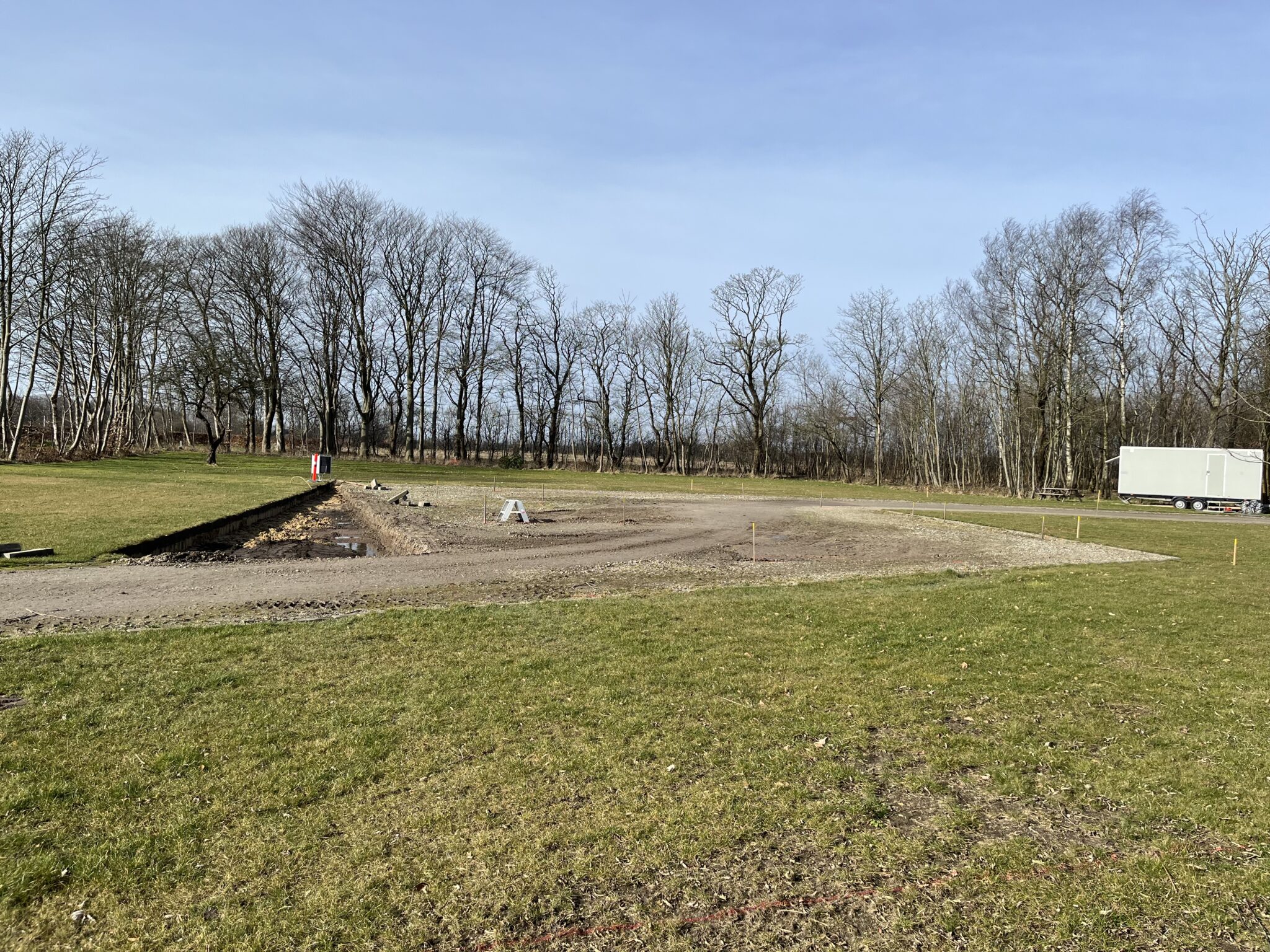 Projektet med den lille tvilling tilbygning som er blevet påbegyndt først på sommeren skrider planmæssig frem og er nu næsten færdig udv. Der mangler stort set bare at blive muret en skalmur i samme hvide sten som den eks. bygning. Der skal ligeledes etableres en vognport med integreret reskabsrum og fundamentet hertil er blevet støbt og de bærende søjler er indstøbt.