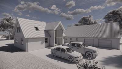 Vi har netop afleveret skitseforslag på et nyt énfamilieshus som skal opføres på en højt beliggende grund i Silkeborg hvor der vil være udsigt over en lille sø. Den eksisterende villa skal fjernes da det ikke skønnes rentabel at om & tilbygge denne.