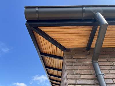 Vi har tegnet en lille forskudt tilbygning med afvalmet tagkonstruktion som på hovedbygning som opføres som en tvilling bygning til den eks. Herudover bliver der etableret en åben vognport med integreret cykelskur i en trækonstruktion.