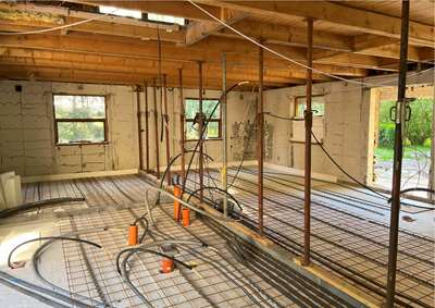 Om & tilbygningsprojektet på en landejendom vi afleverede skitseforslag på i februar i år er nu så småt påbegyndt. Ejeren af ejendommen skal selv forestå en del af byggearbejdet og på nuværende tidspunkt er både under og overetagen strippet helt og der er klar til at blive støbt fundamenter for begge tilbygninger.
