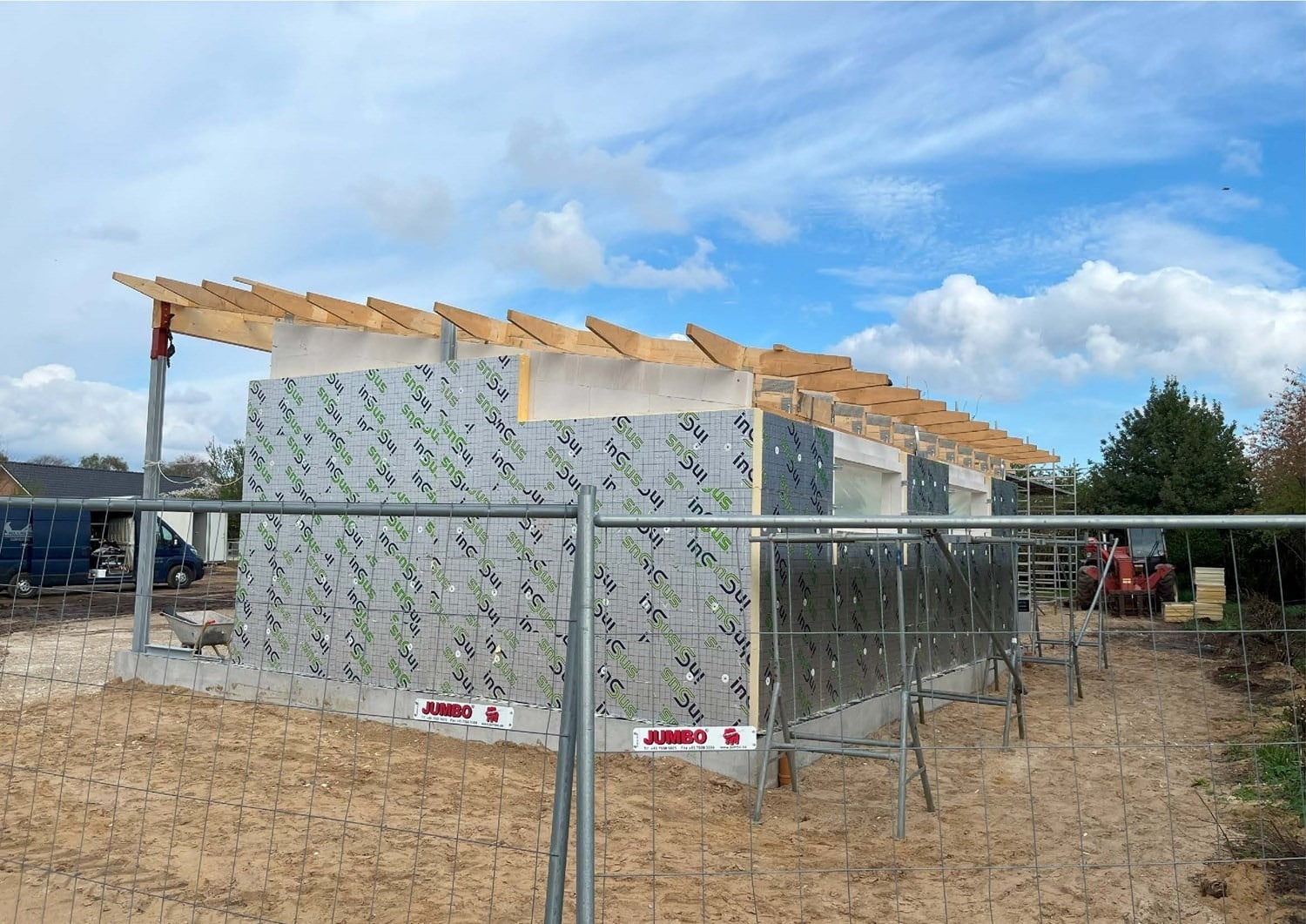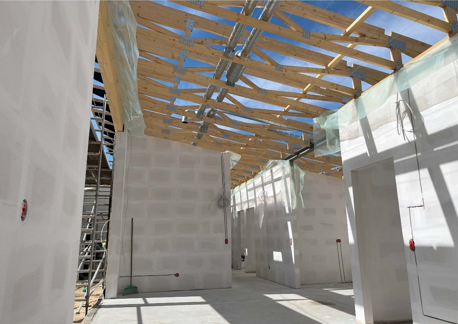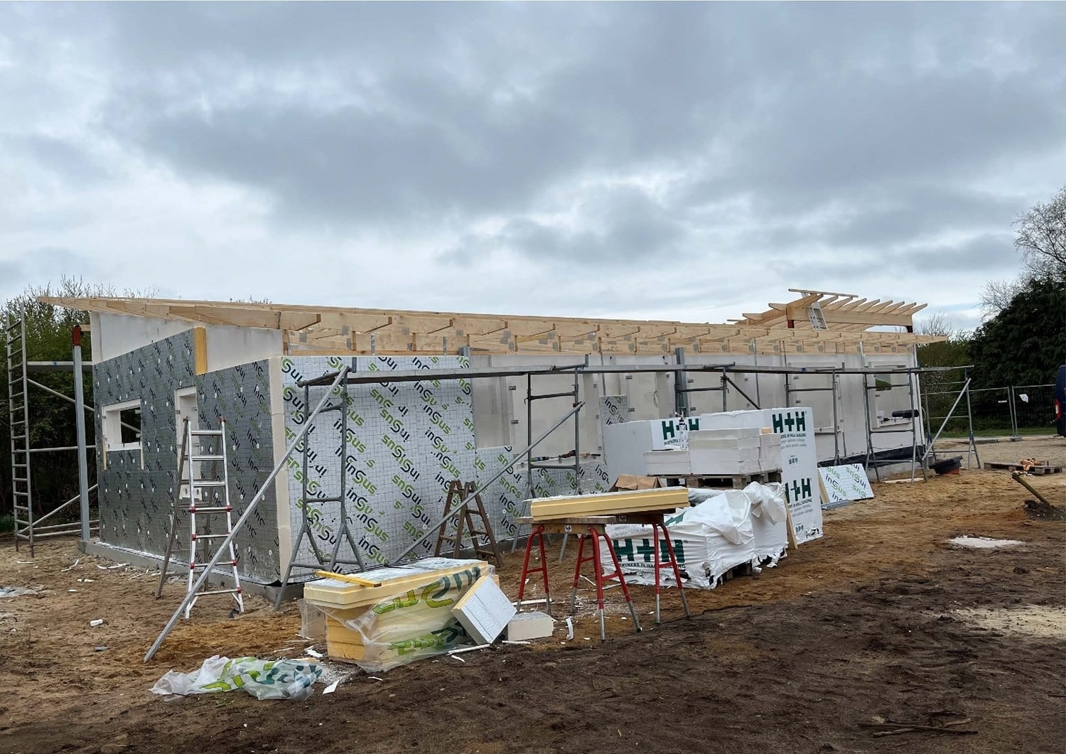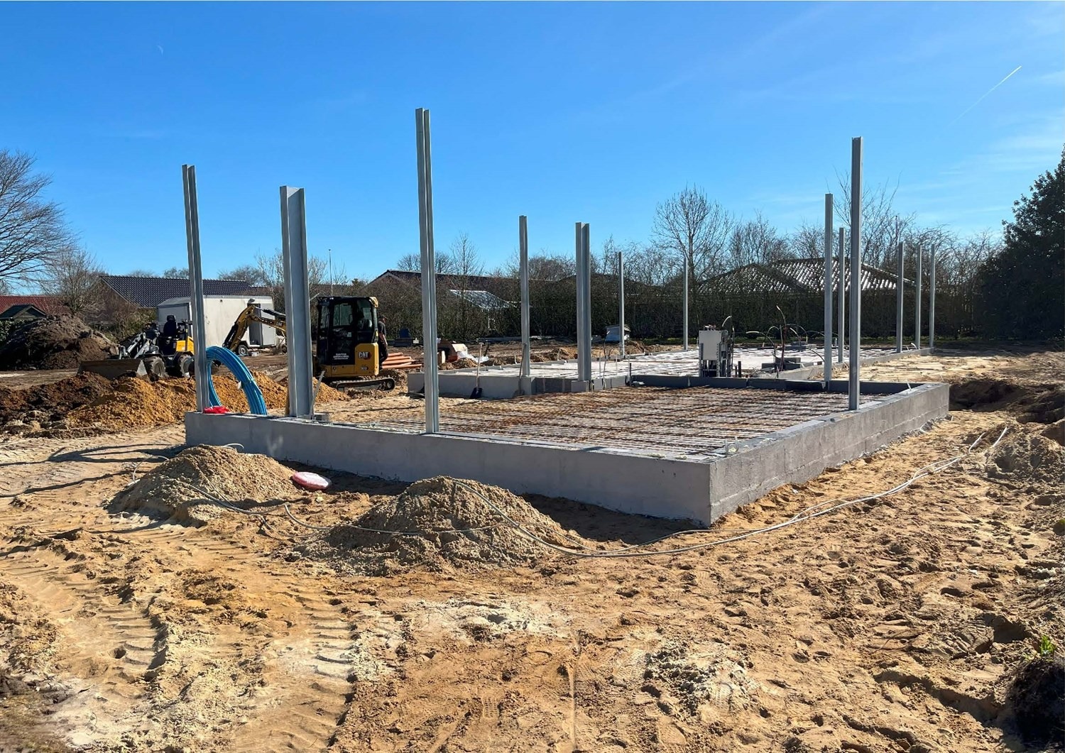 På den resterende del af grunden er det meningen at der skal opføres 2 fritliggende dobbelhuse. Kravet til den nye bolig var at den ikke måtte være mere end omkring 130 m² brutto boligareal + en integreret dobbelgarage. Vi har tegnet en lille egoistbolig med et stort centralt køkken/alrum & opholdsstue med skrå lodter og et dejlig lysindfald. Boligen indeholder herudover en voksen afdeling med eget toilet & bad samt et påklædningsværelse