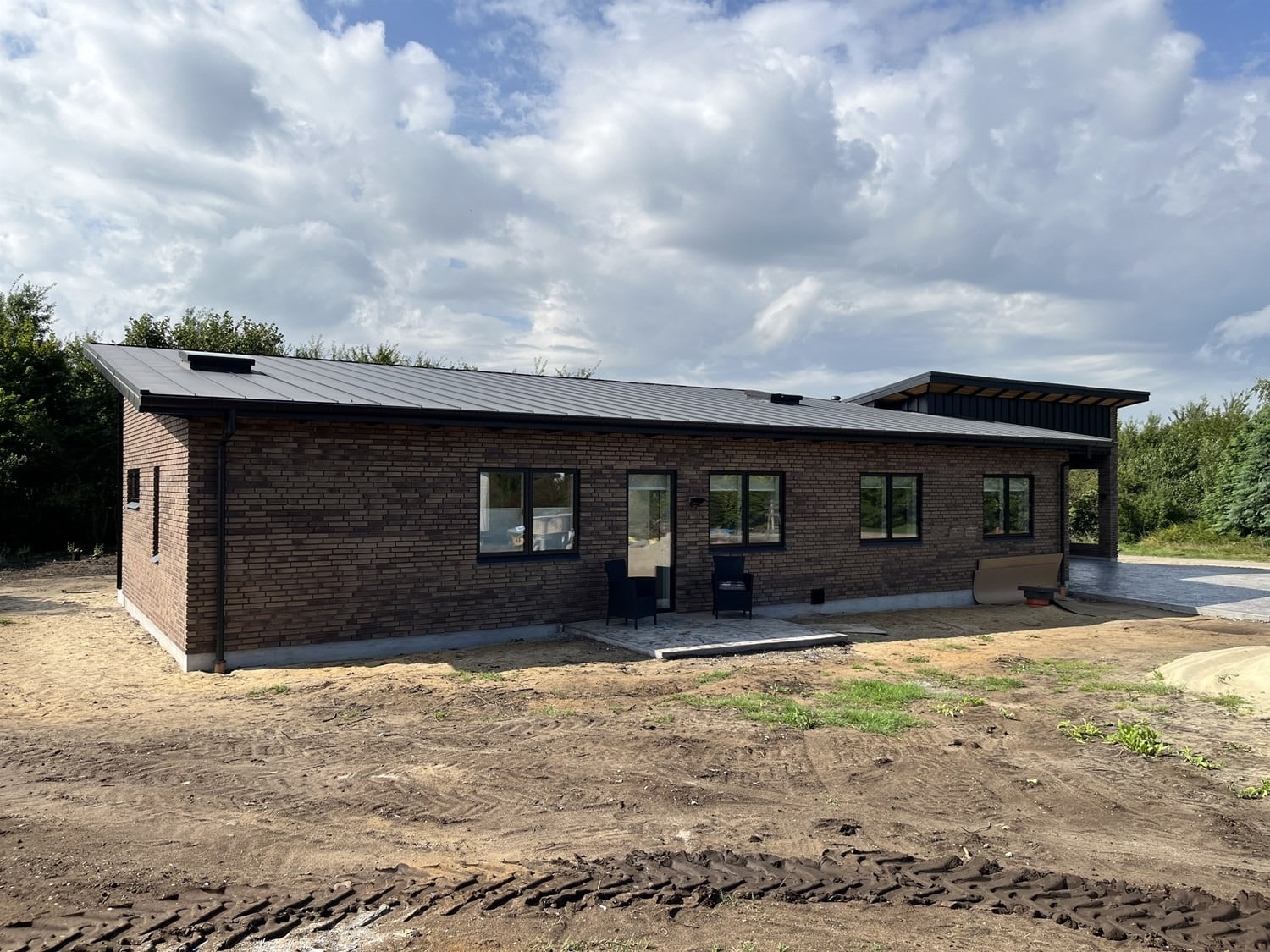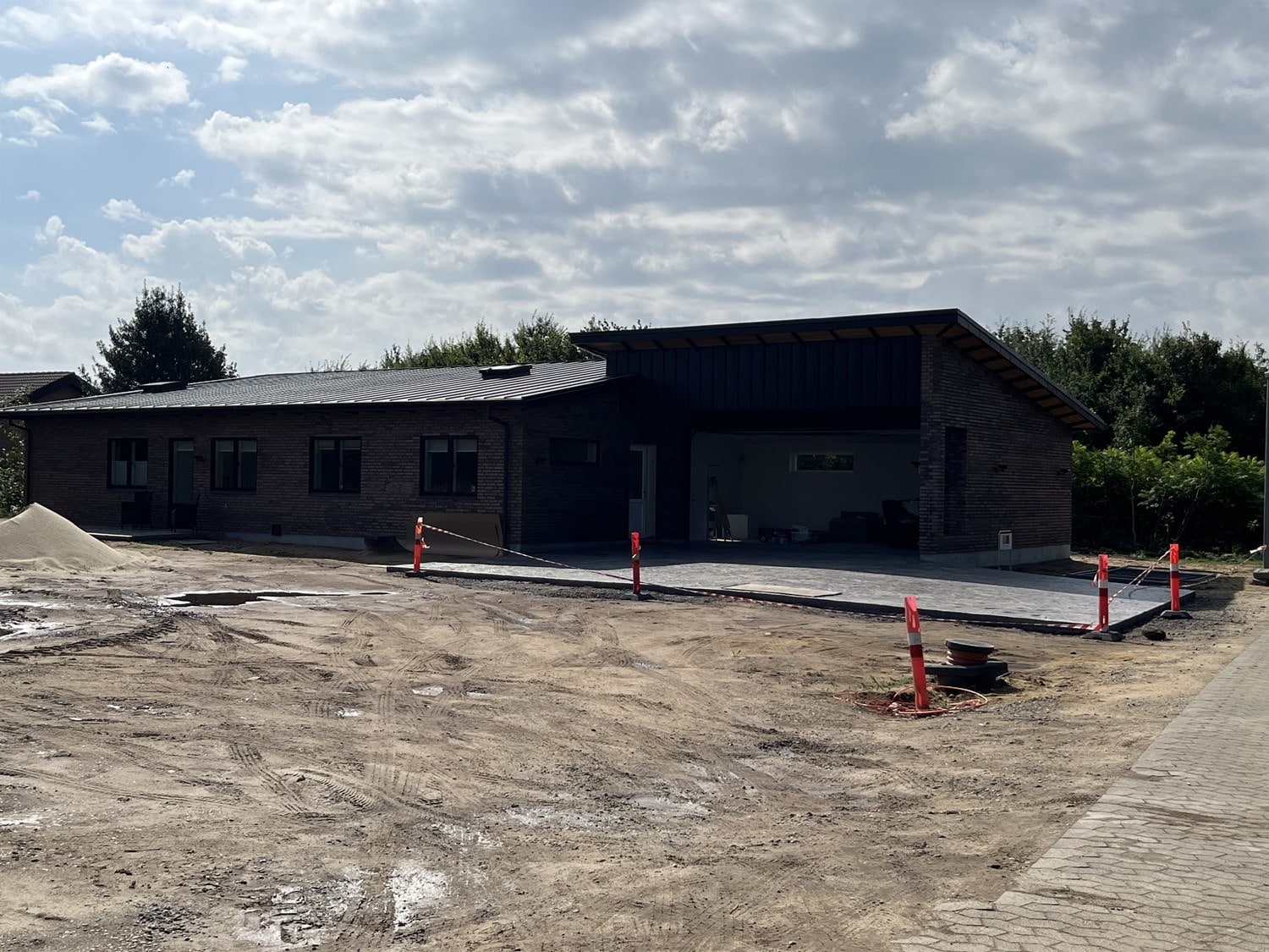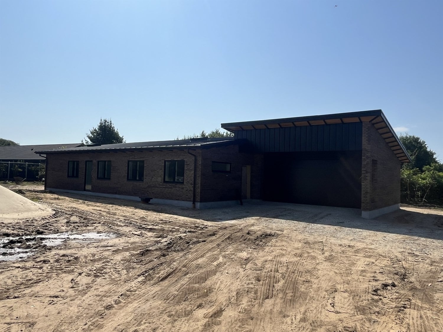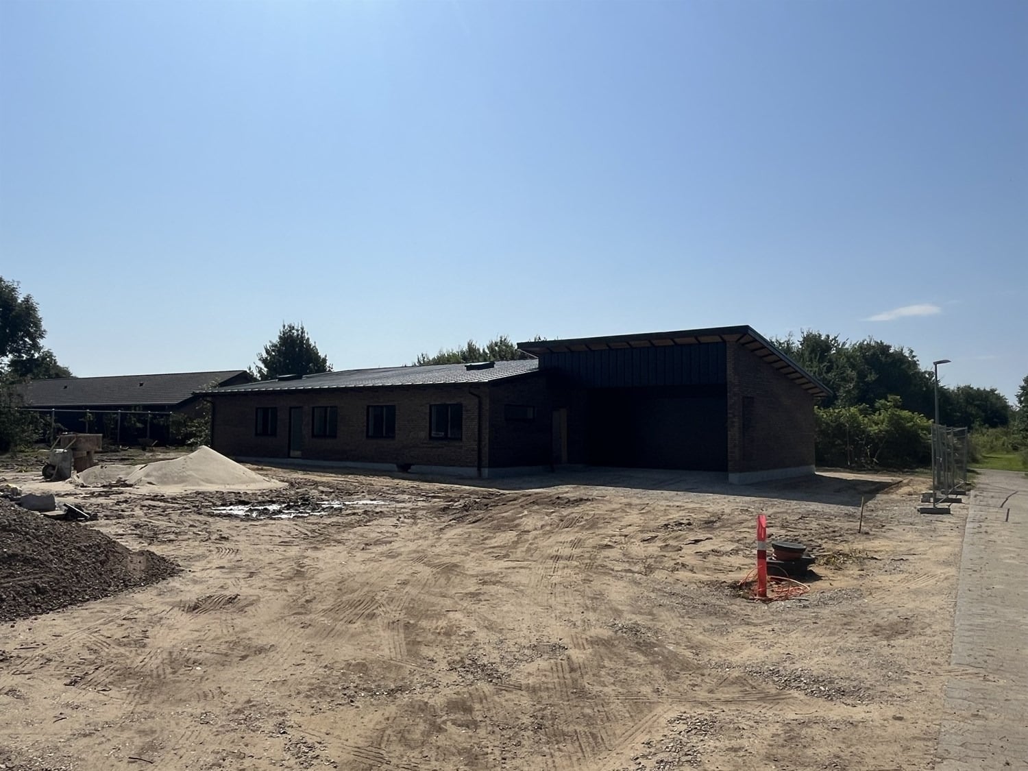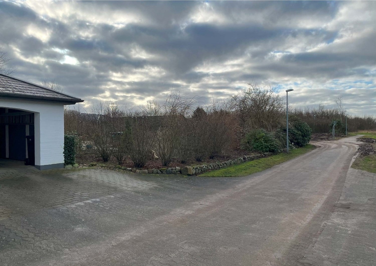 For enden af en blind vej i Bramming har vores kunde købt en større grund hvor der ligger en ældre ejendom på den nordlige del af grunden. Kunden der selv driver et større lokalt tømrerfirma har planer om at opdele matriklen i 2 selvstændige matrikler hvor der på den sydlige del af grunden skal opføres et nyt énfamilieshus som han selv skal bo i.