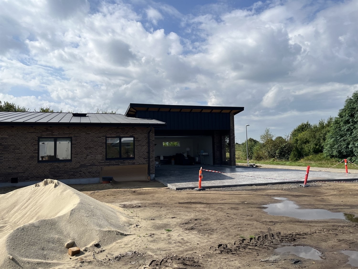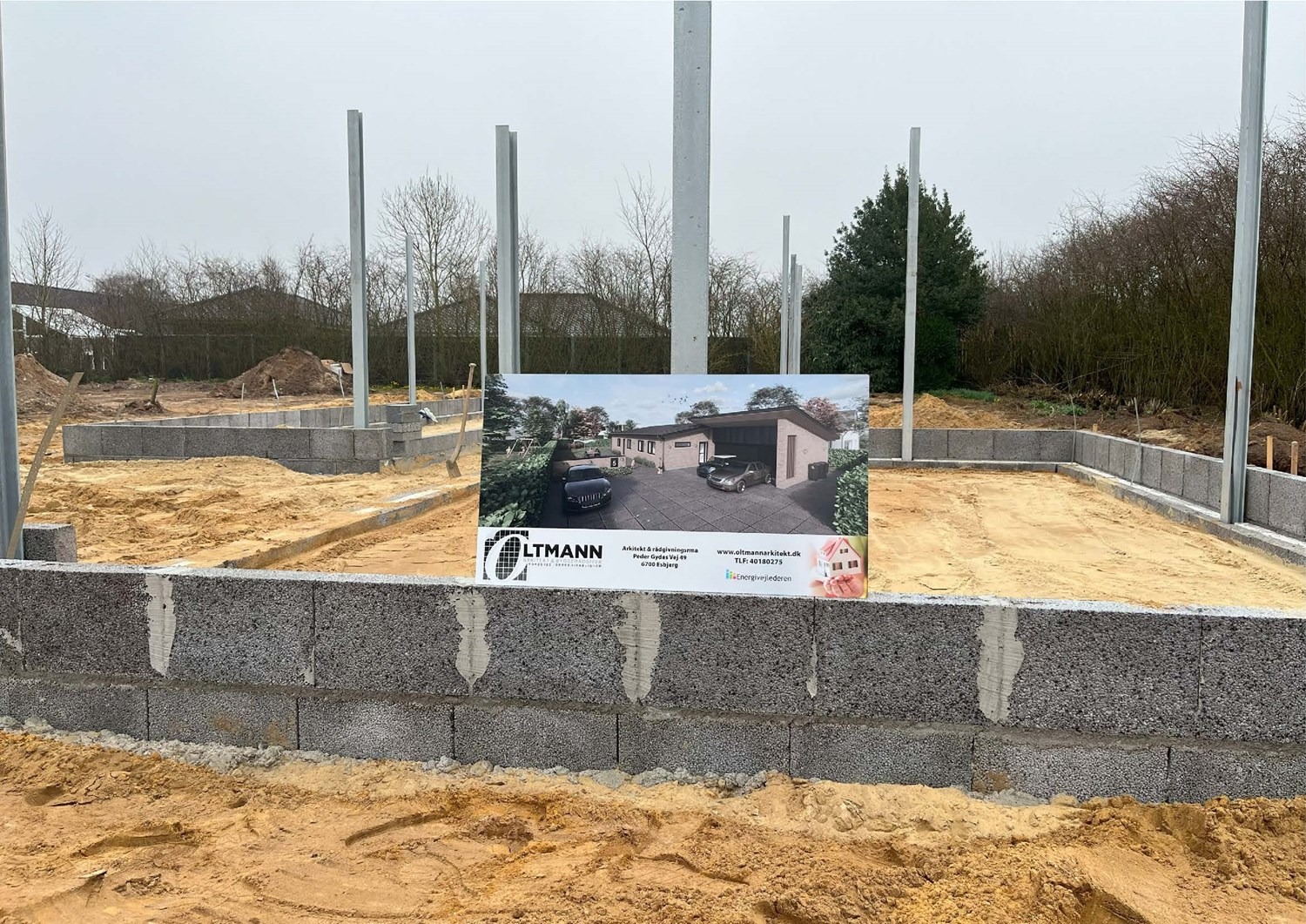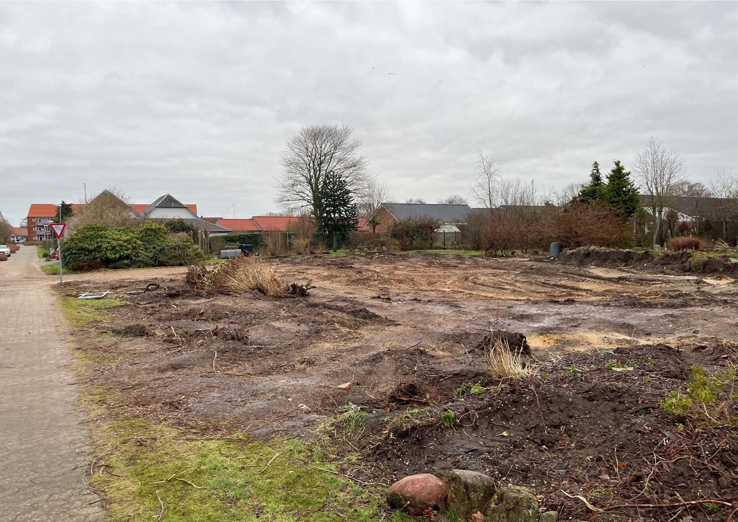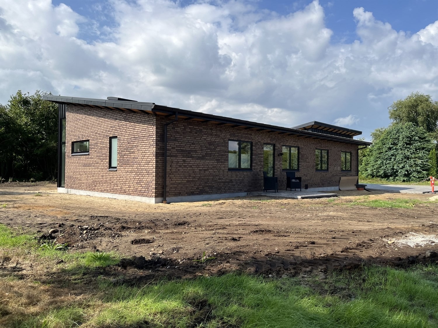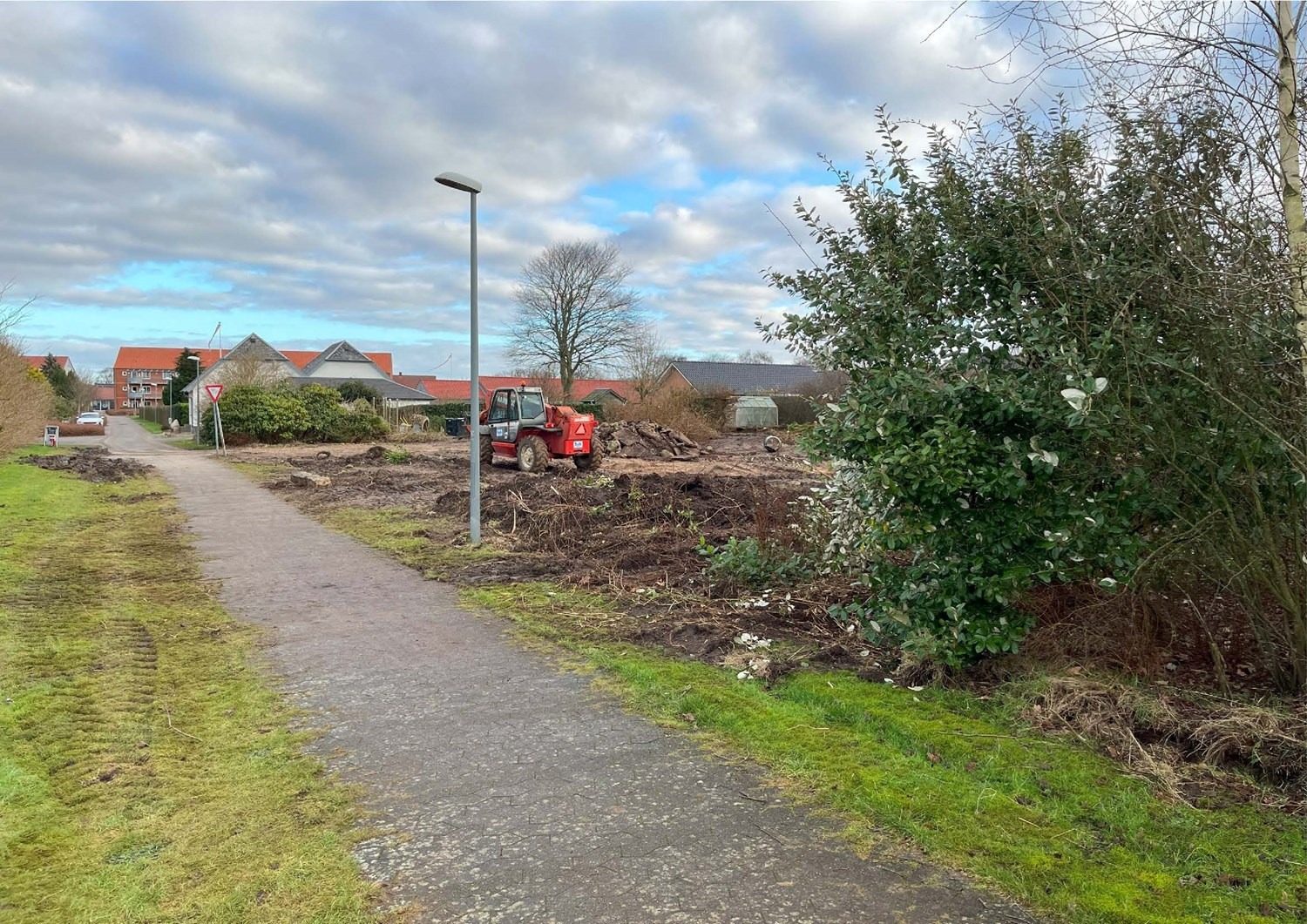 For enden af en blind vej i Bramming har vores kunde købt en større grund hvor der ligger en ældre ejendom på den nordlige del af grunden. Kunden der selv driver et større lokalt tømrerfirma har planer om at opdele matriklen i 2 selvstændige matrikler hvor der på den sydlige del af grunden skal opføres et nyt énfamilieshus som han selv skal bo i.