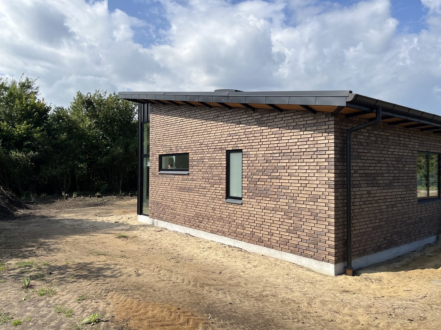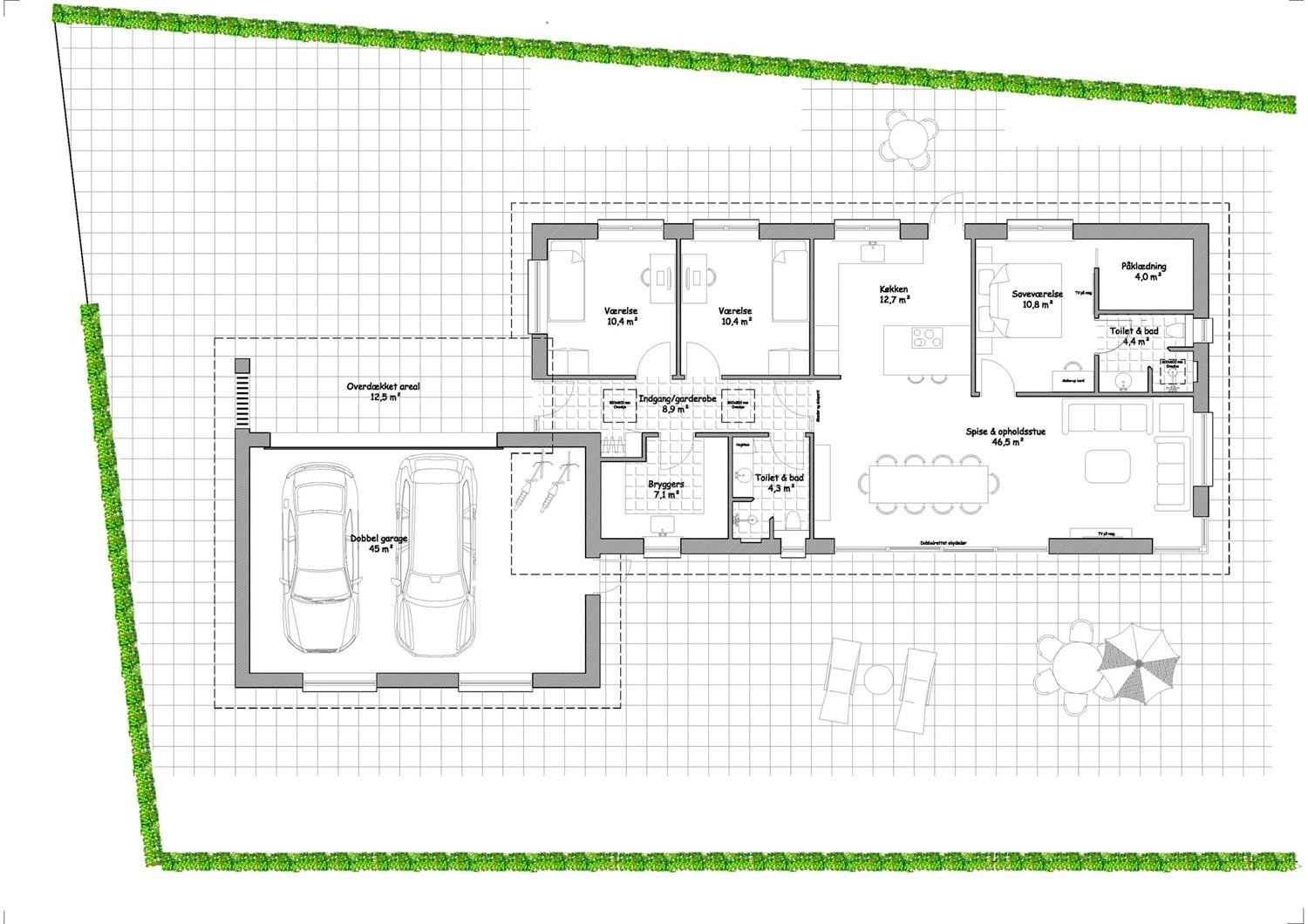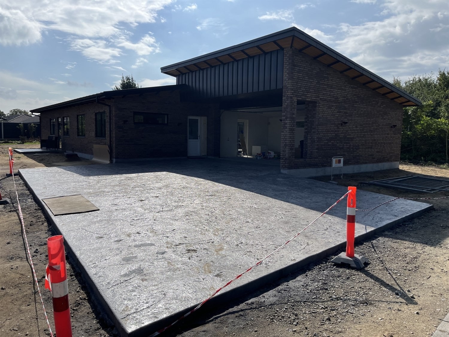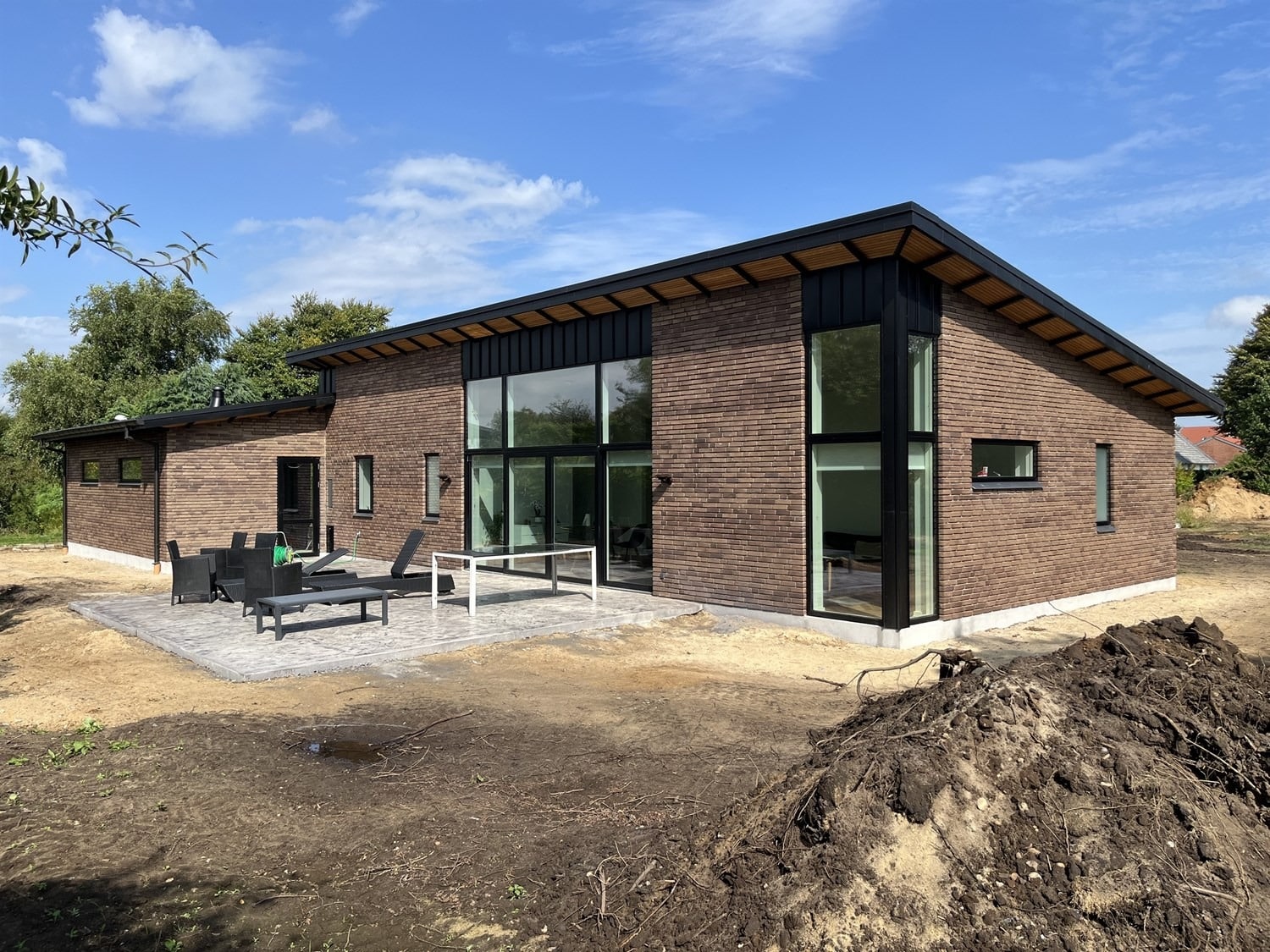 For enden af en blind vej i Bramming har vores kunde købt en større grund hvor der ligger en ældre ejendom på den nordlige del af grunden. Kunden der selv driver et større lokalt tømrerfirma har planer om at opdele matriklen i 2 selvstændige matrikler hvor der på den sydlige del af grunden skal opføres et nyt énfamilieshus som han selv skal bo i.