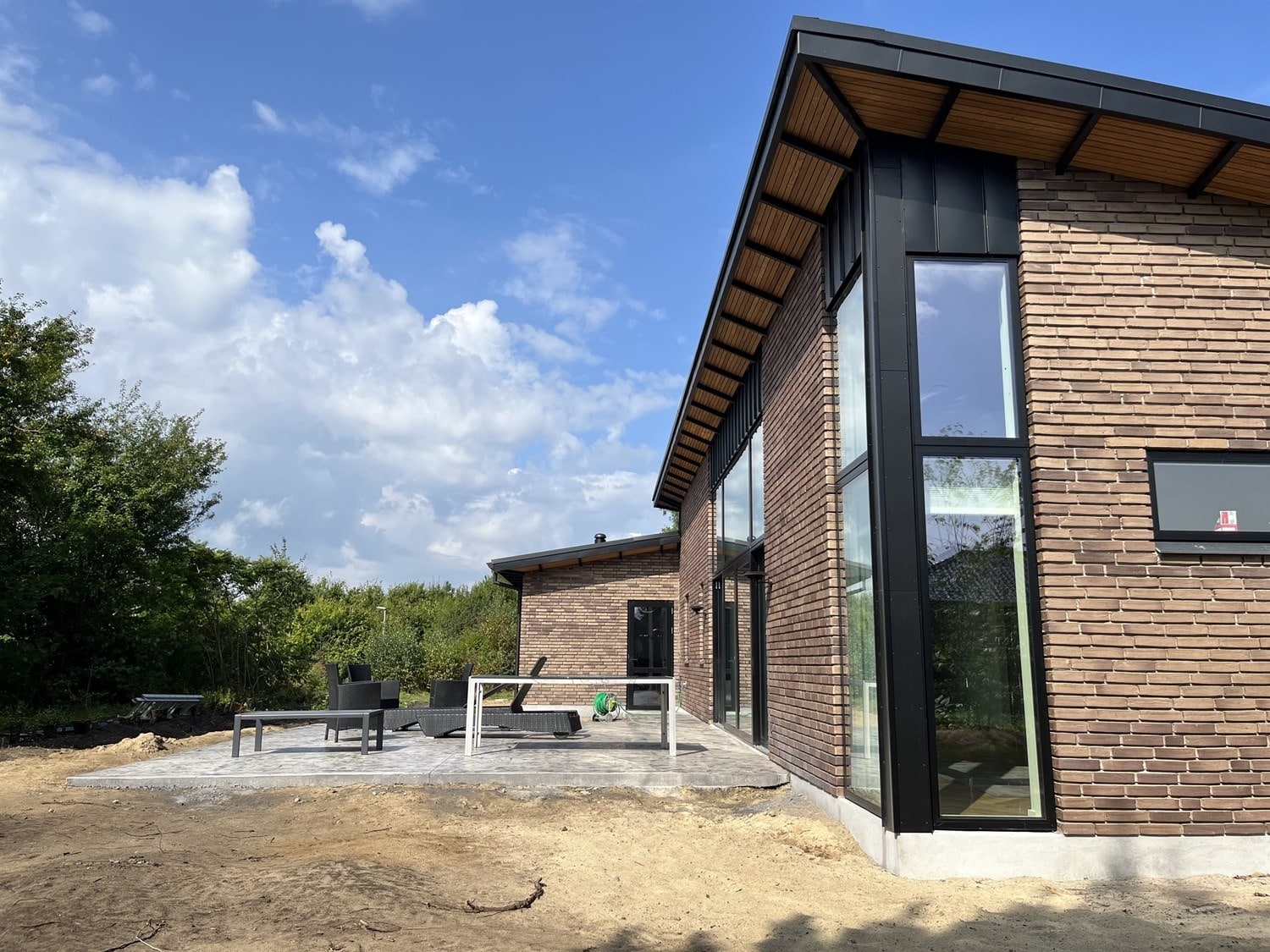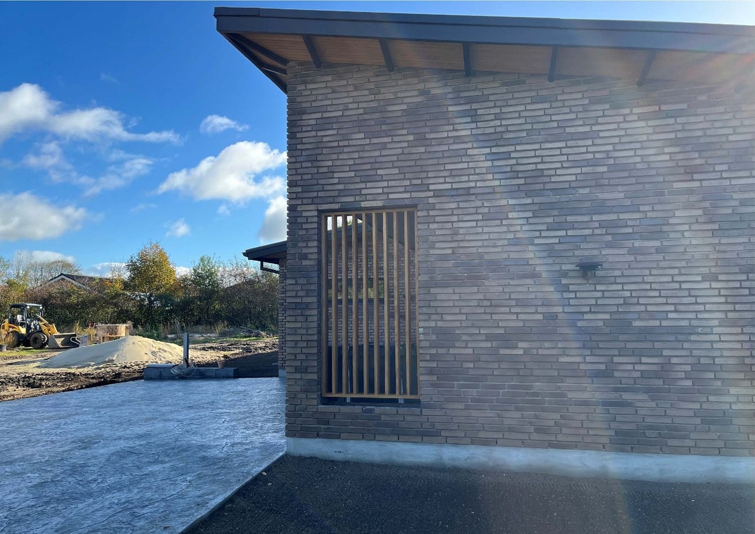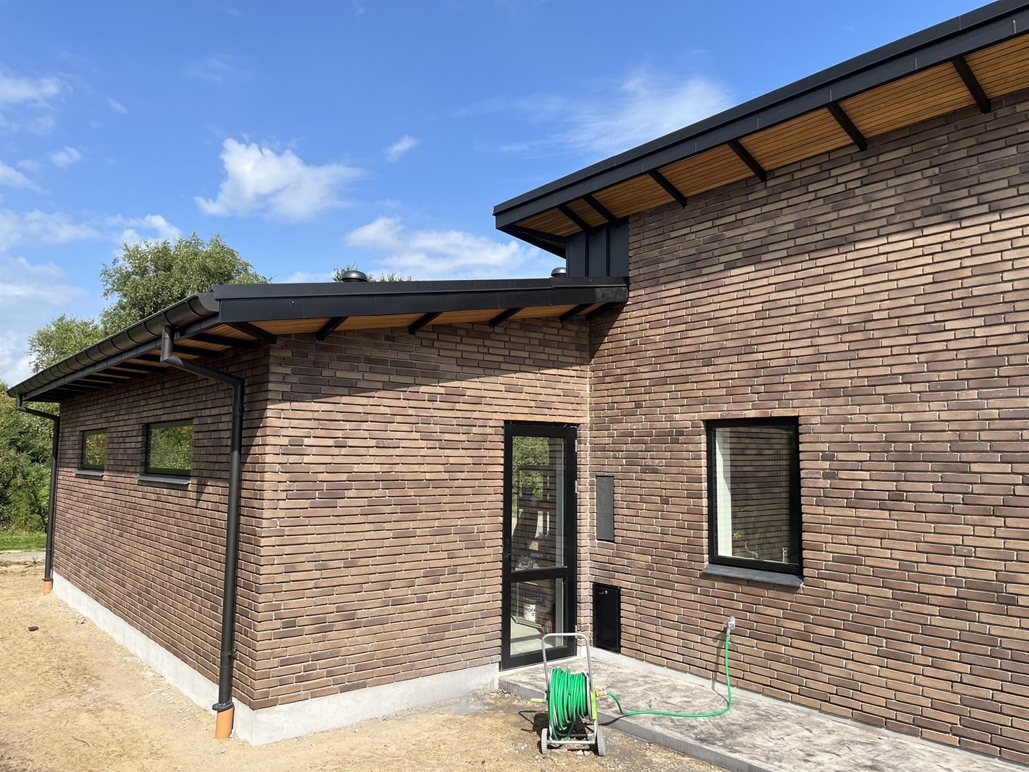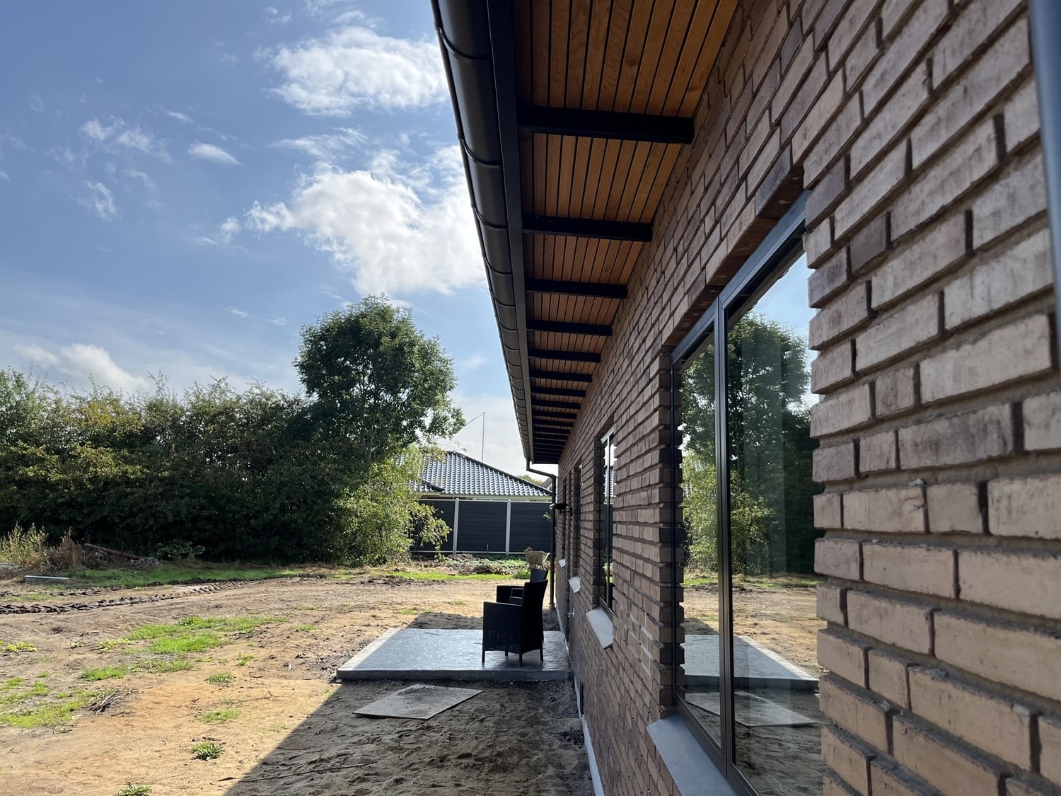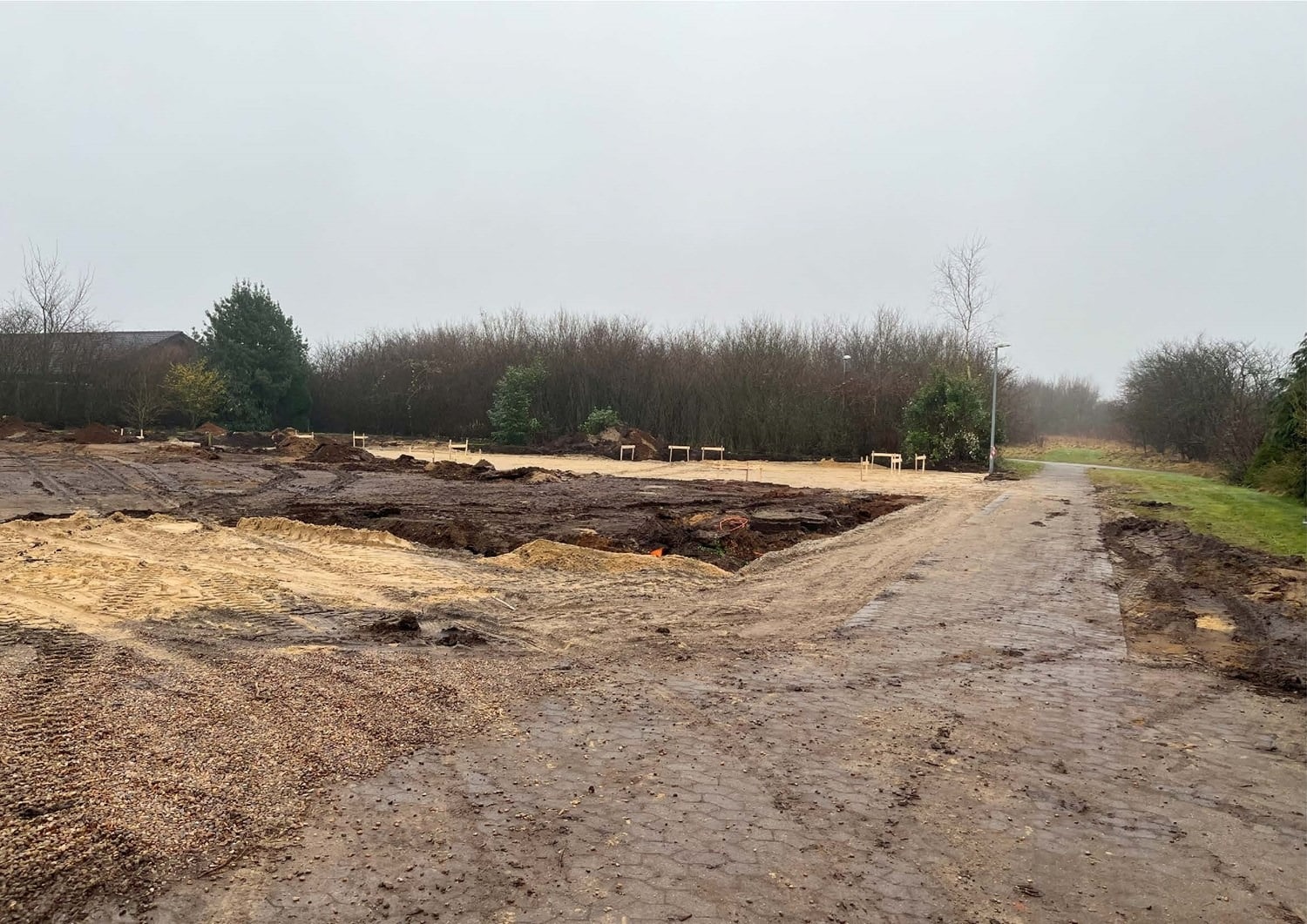 For enden af en blind vej i Bramming har vores kunde købt en større grund hvor der ligger en ældre ejendom på den nordlige del af grunden. Kunden der selv driver et større lokalt tømrerfirma har planer om at opdele matriklen i 2 selvstændige matrikler hvor der på den sydlige del af grunden skal opføres et nyt énfamilieshus som han selv skal bo i.