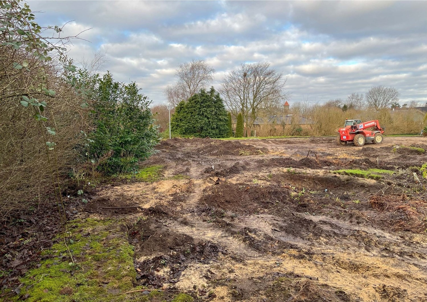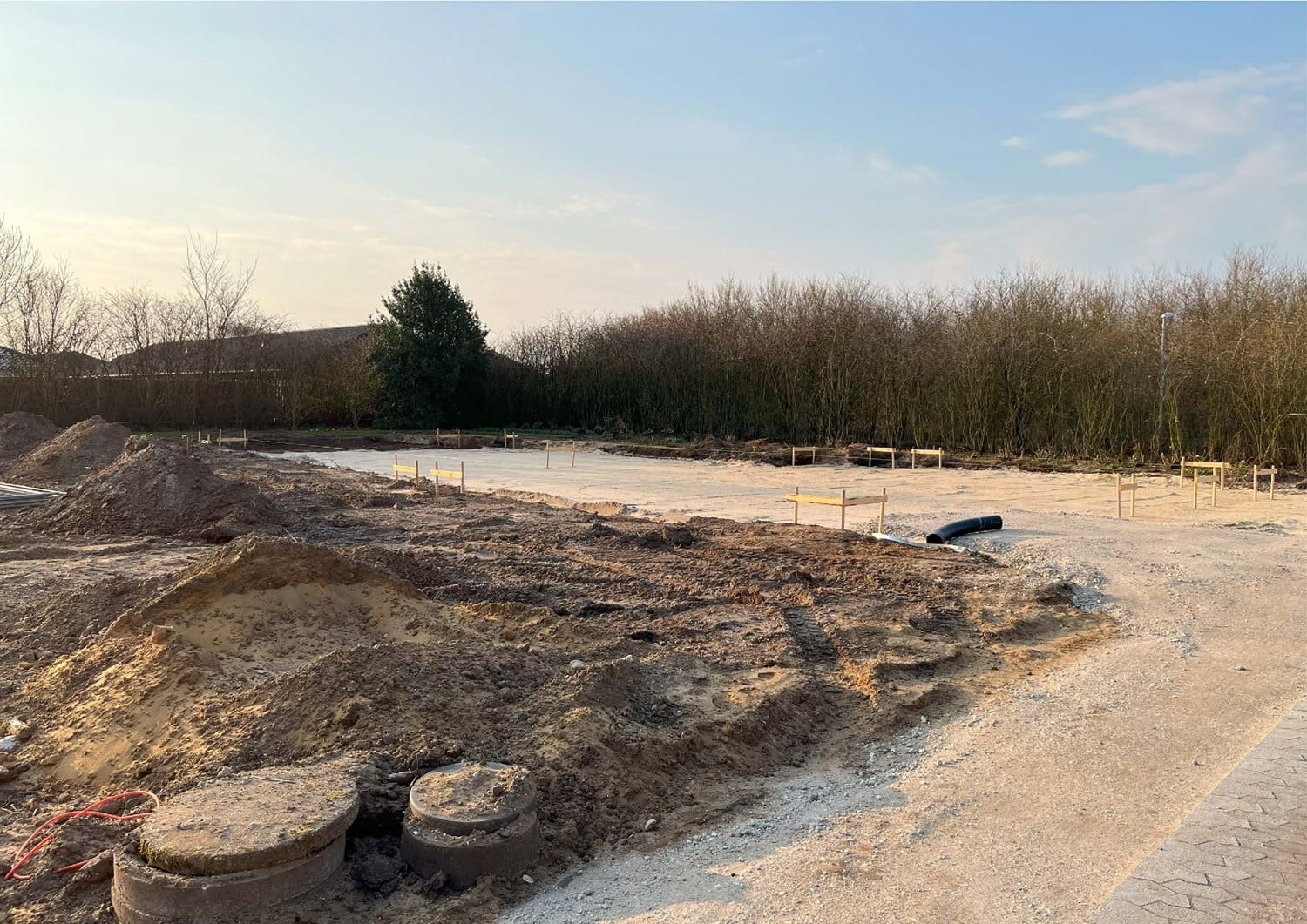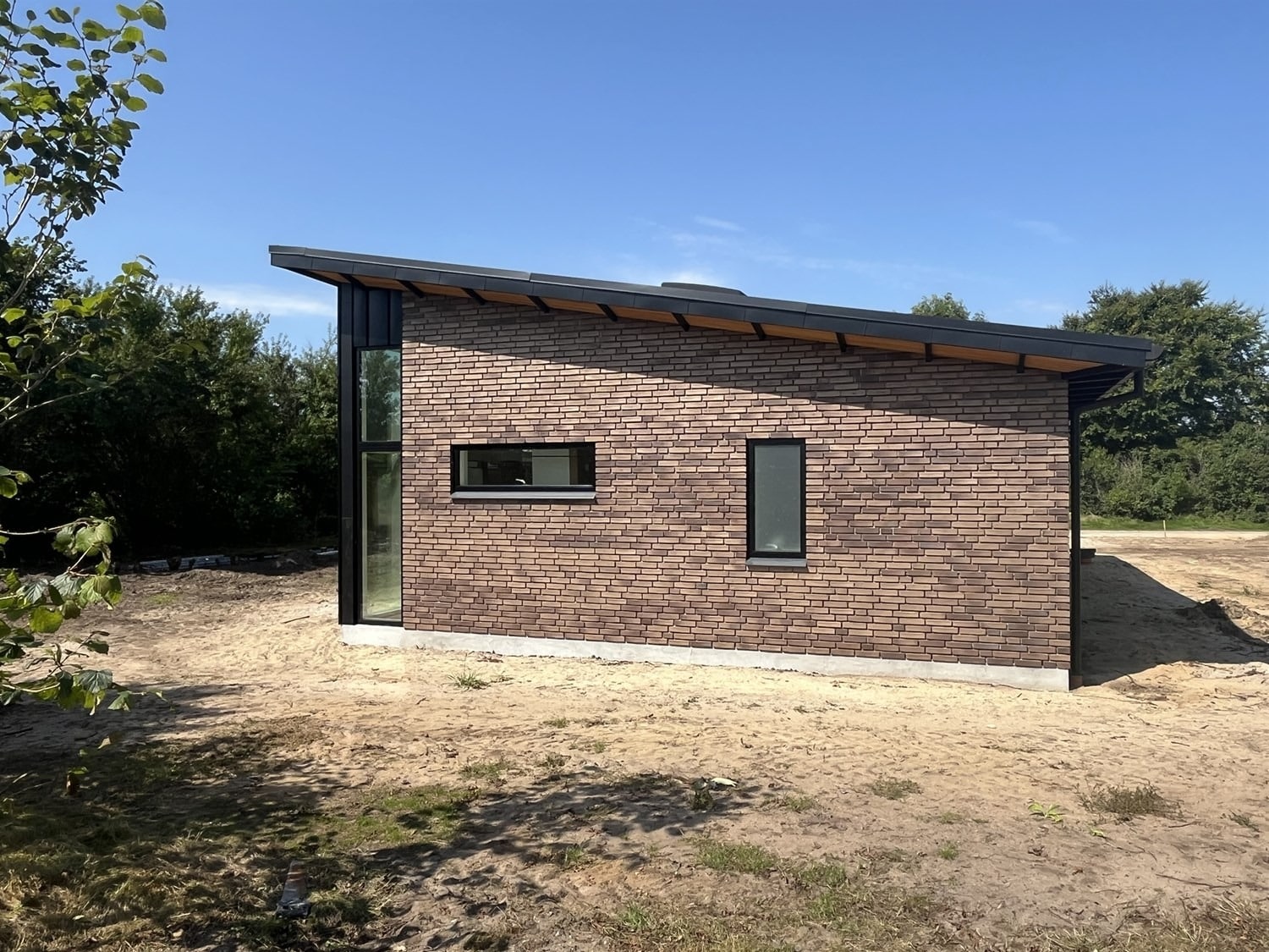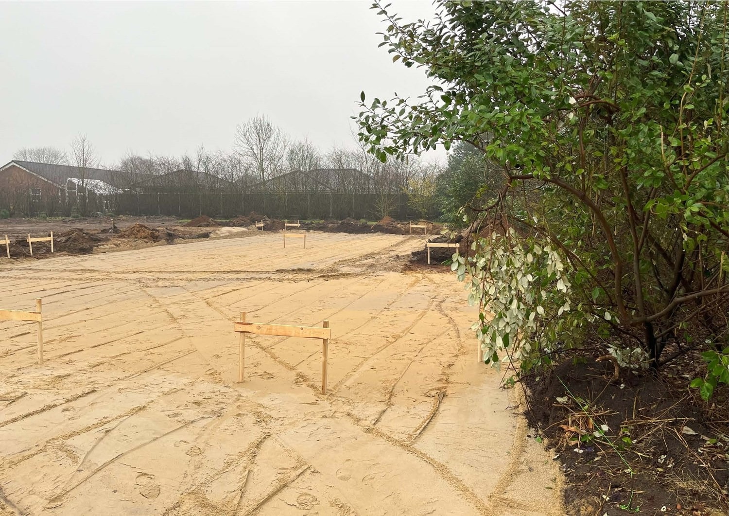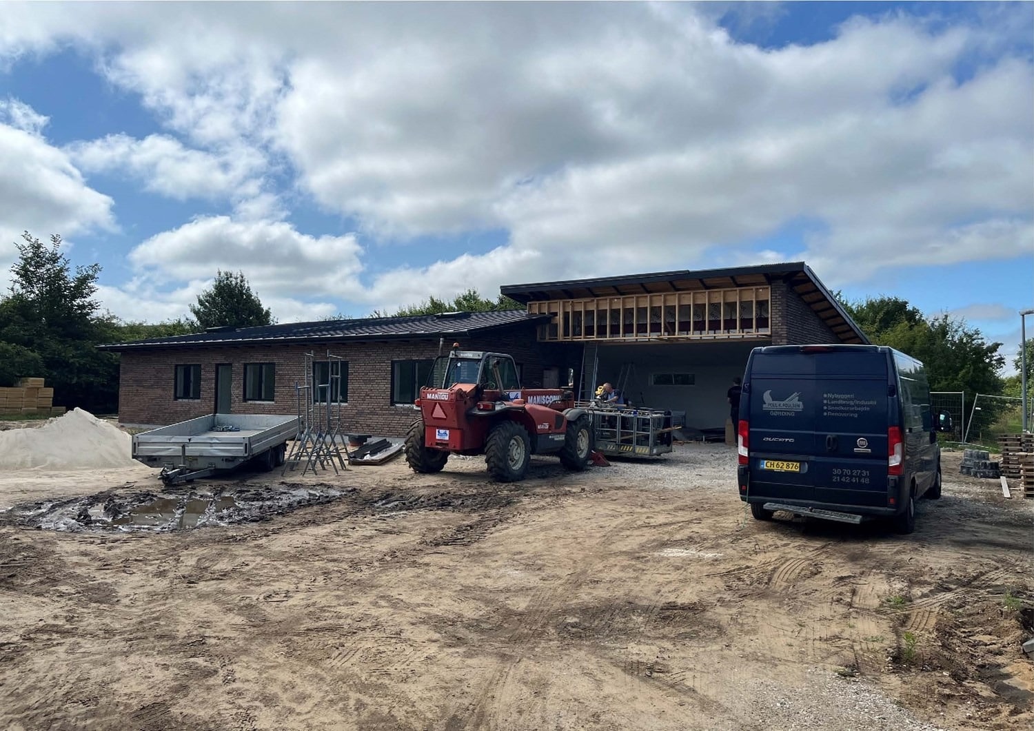 For enden af en blind vej i Bramming har vores kunde købt en større grund hvor der ligger en ældre ejendom på den nordlige del af grunden. Kunden der selv driver et større lokalt tømrerfirma har planer om at opdele matriklen i 2 selvstændige matrikler hvor der på den sydlige del af grunden skal opføres et nyt énfamilieshus som han selv skal bo i.