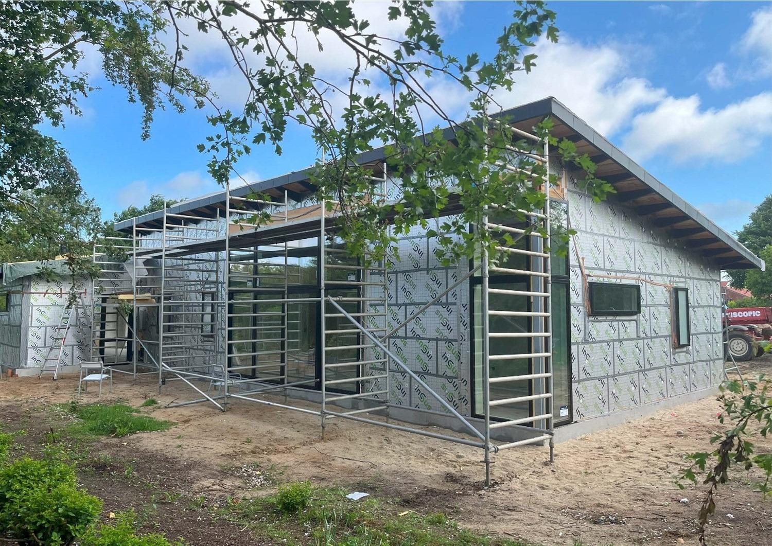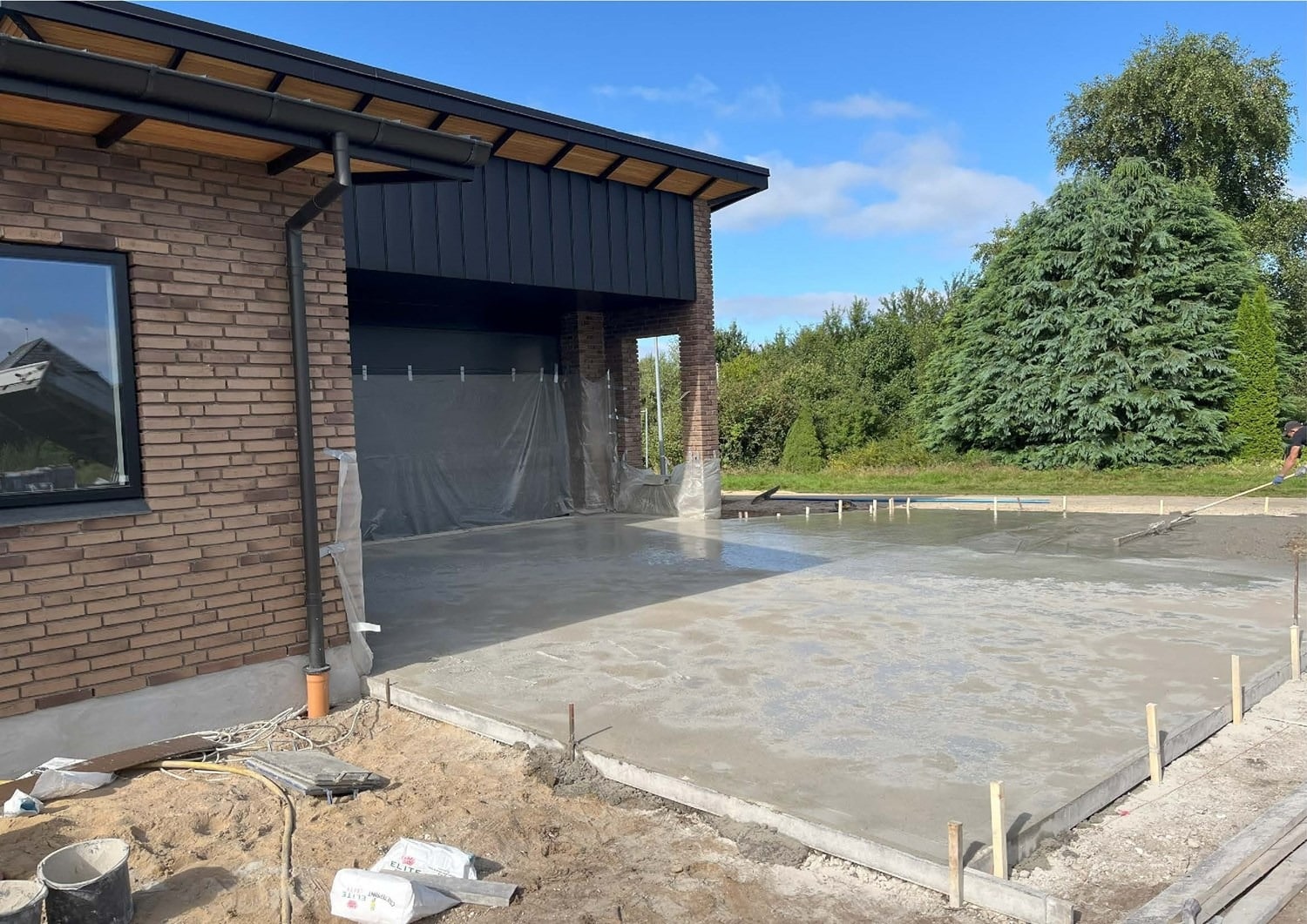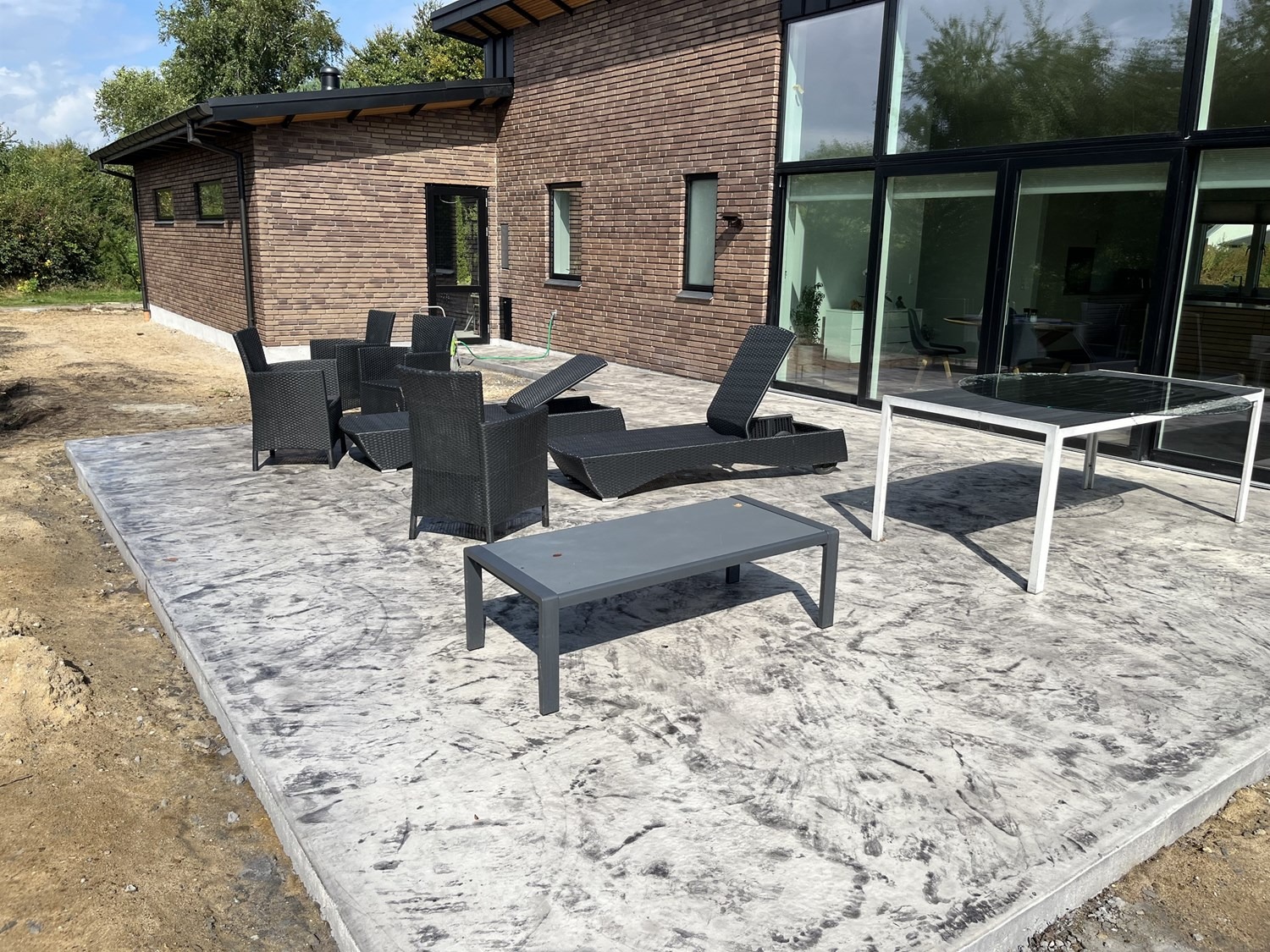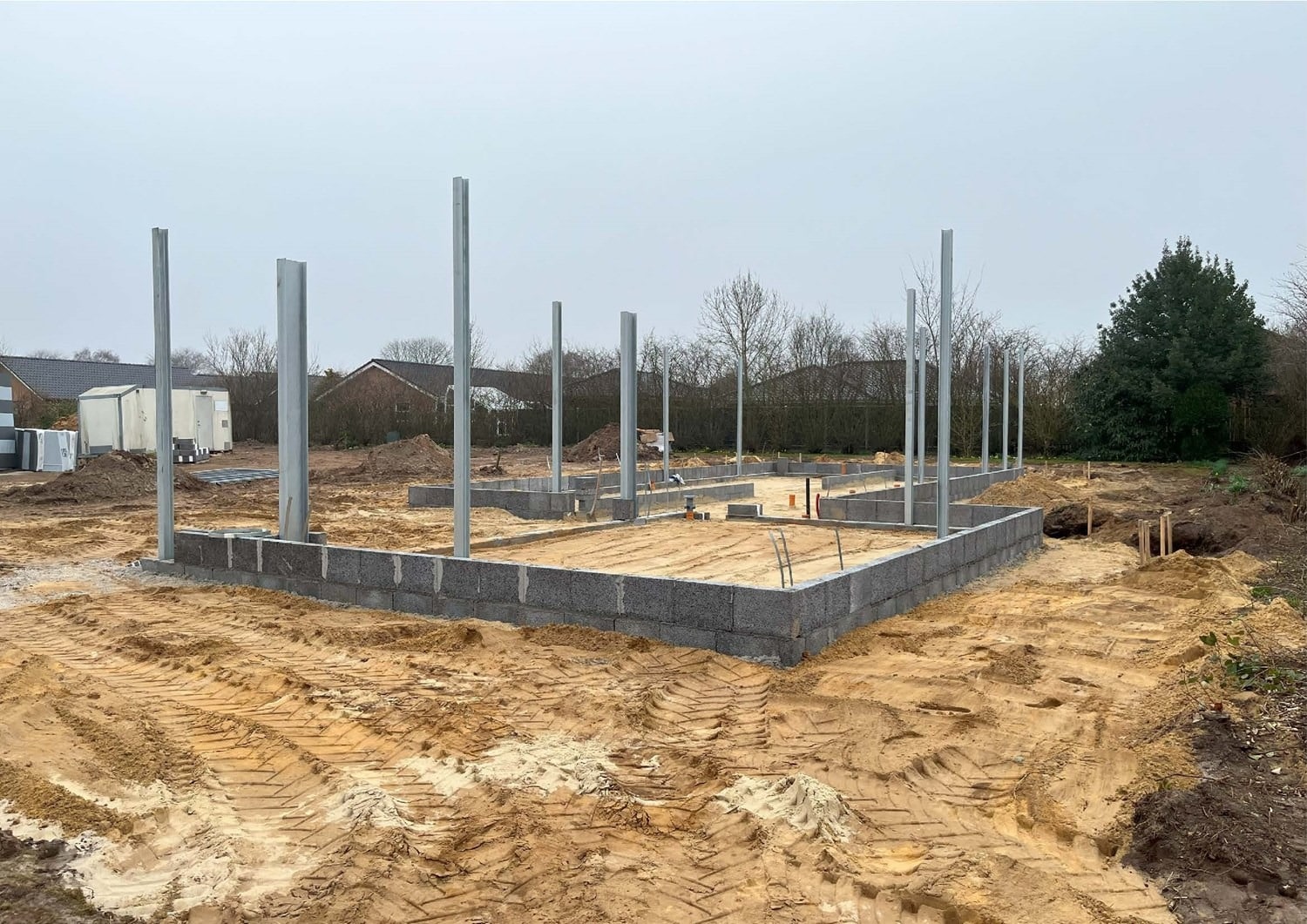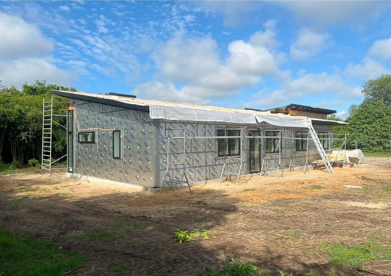 For enden af en blind vej i Bramming har vores kunde købt en større grund hvor der ligger en ældre ejendom på den nordlige del af grunden. Kunden der selv driver et større lokalt tømrerfirma har planer om at opdele matriklen i 2 selvstændige matrikler hvor der på den sydlige del af grunden skal opføres et nyt énfamilieshus som han selv skal bo i.