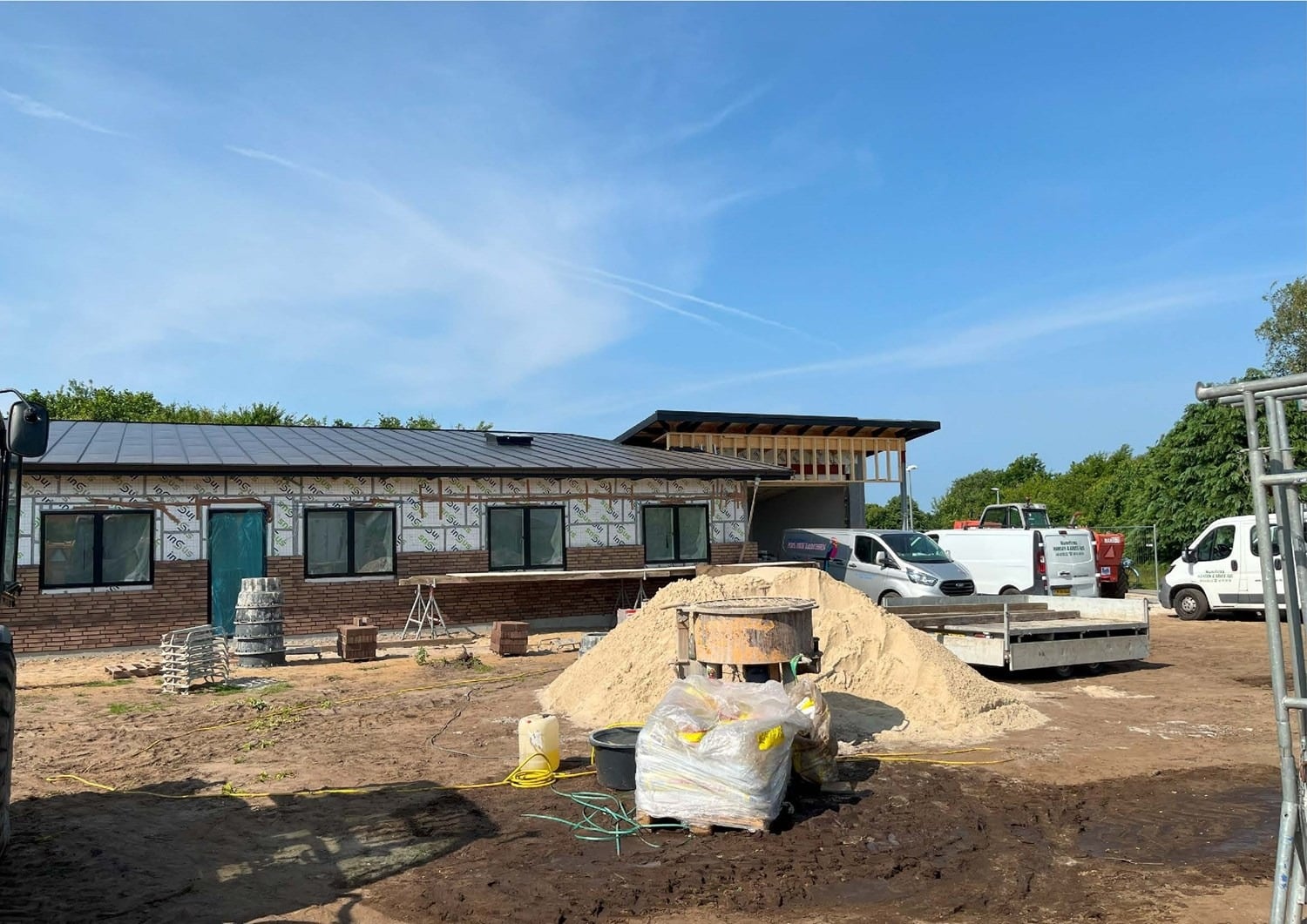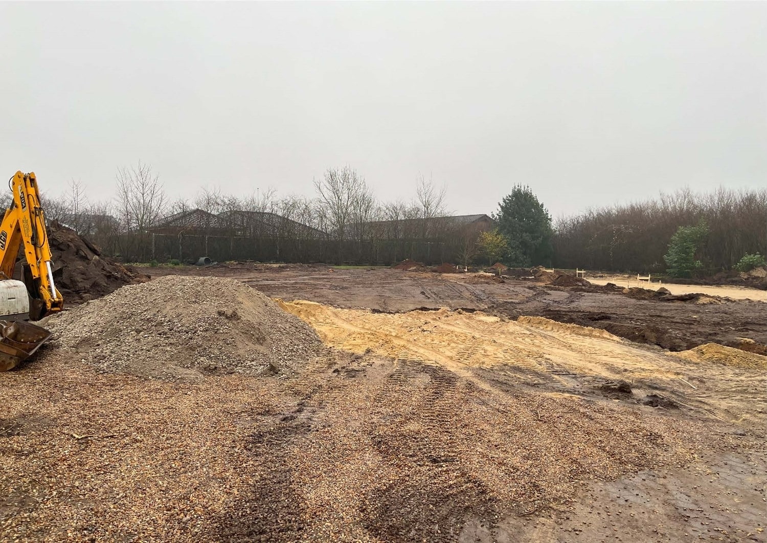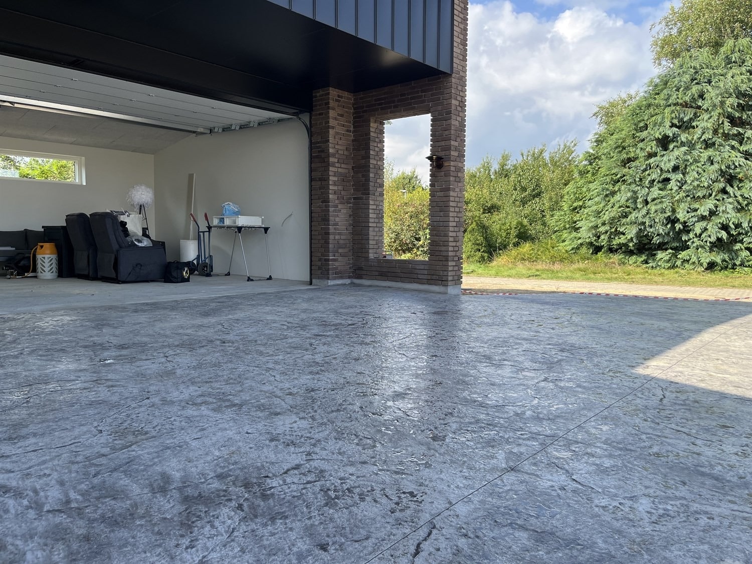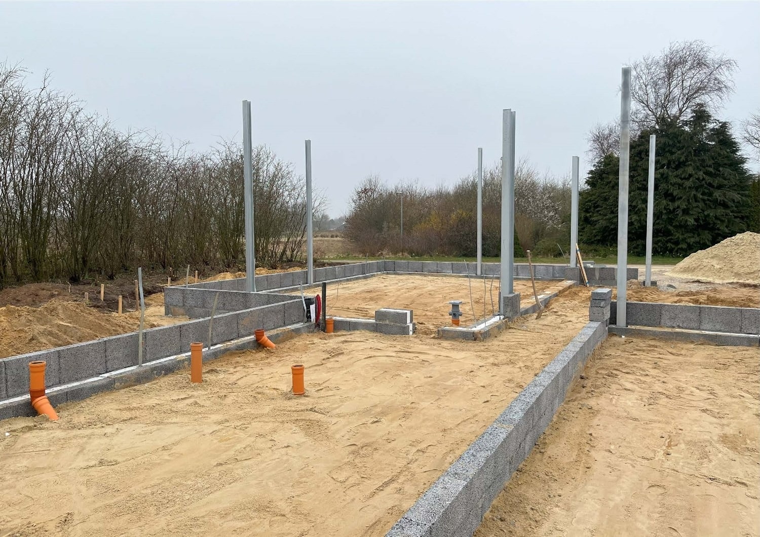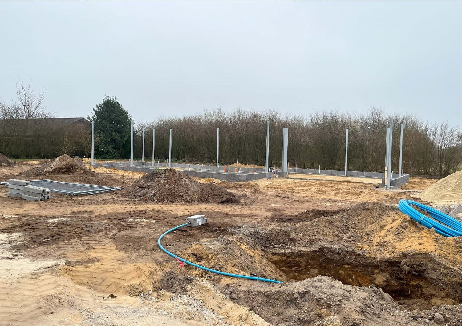 For enden af en blind vej i Bramming har vores kunde købt en større grund hvor der ligger en ældre ejendom på den nordlige del af grunden. Kunden der selv driver et større lokalt tømrerfirma har planer om at opdele matriklen i 2 selvstændige matrikler hvor der på den sydlige del af grunden skal opføres et nyt énfamilieshus som han selv skal bo i.